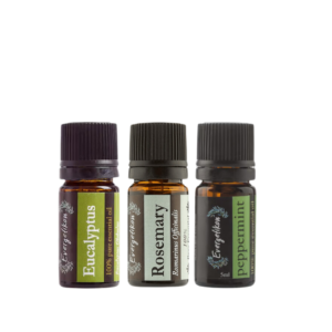 Æterisk olie - sæt med eukalyptus, rosmarin, pebermynte