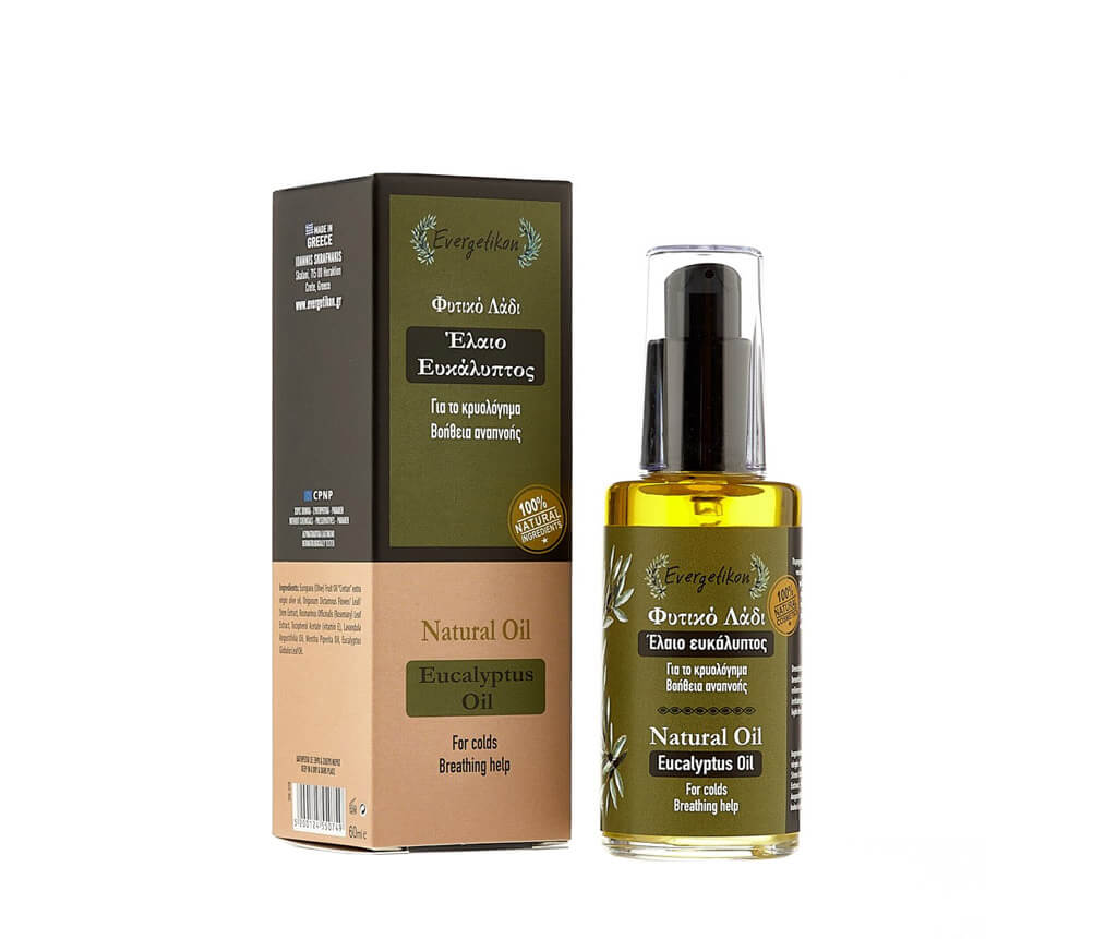 Eucalyptusolie van Evergetikon is gemaakt van 100% natuurlijke ingrediënten. De olie bevat geen water en is gemaakt met koudgeperste olijfolie van de eerste persing.